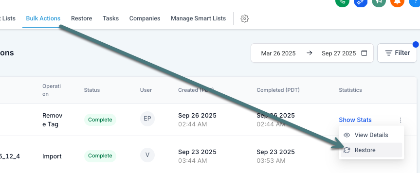 Veranderingen kan je altijd nog terugdraaien, via Bulk Actions: